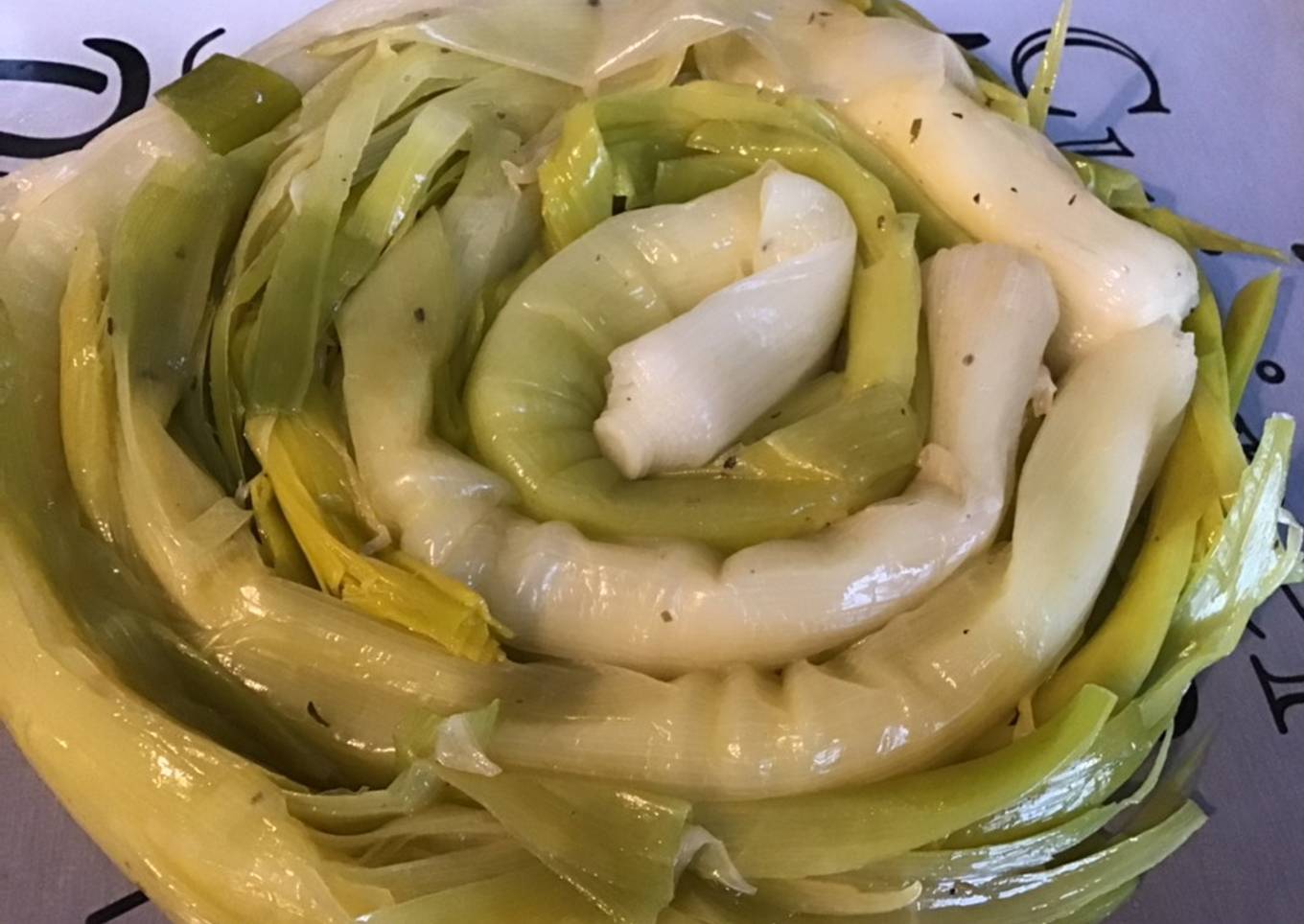 - Enrouler les poireaux pour former une rosace