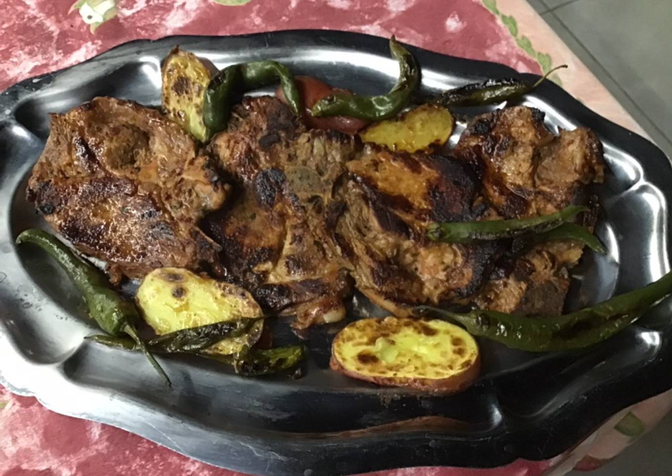 Cotes de porc grillées,marinées aux pommes de terre et piments verts