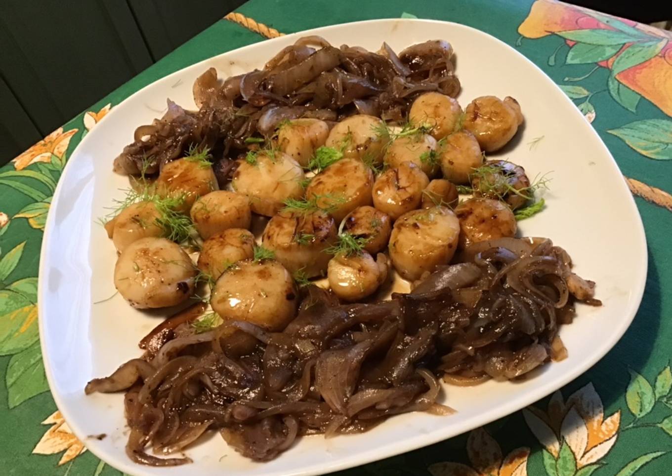 Noix de saint Jacques aux oignons de roscoff caramélisés
